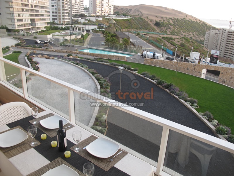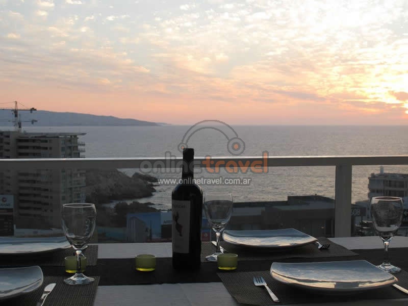 Lujoso departamento de 73 m2 con impresionante vista al mar. Tiene capacidad para 5 personas y cuenta con 2 habitaciones y 2 baños (ambos en suite), una de las habitaciones con cama matrimonial y la otra habitación con una cama cucheta y una individual. Está ubicado en el sector de Costa de Montemar, en el Condominio Vistamar.